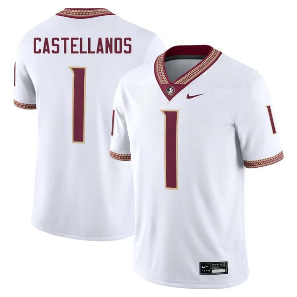 • #1 Men Tommy Castellanos White College Football Florida State Seminoles 2025-26 Jersey